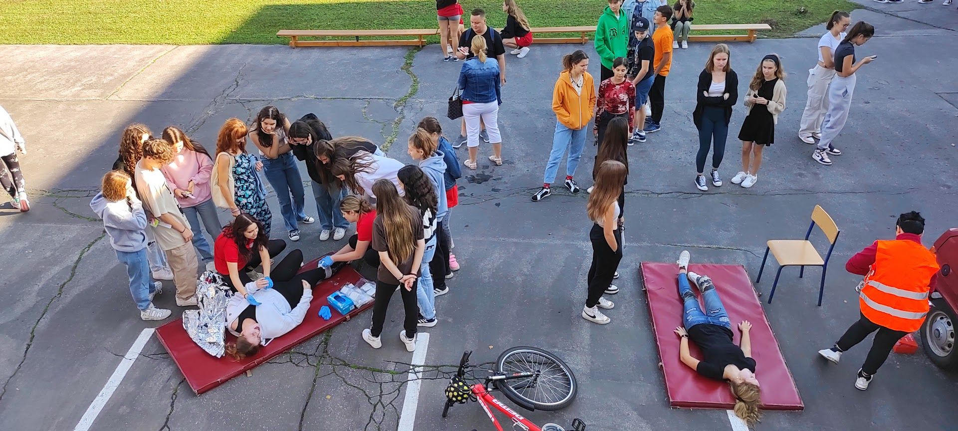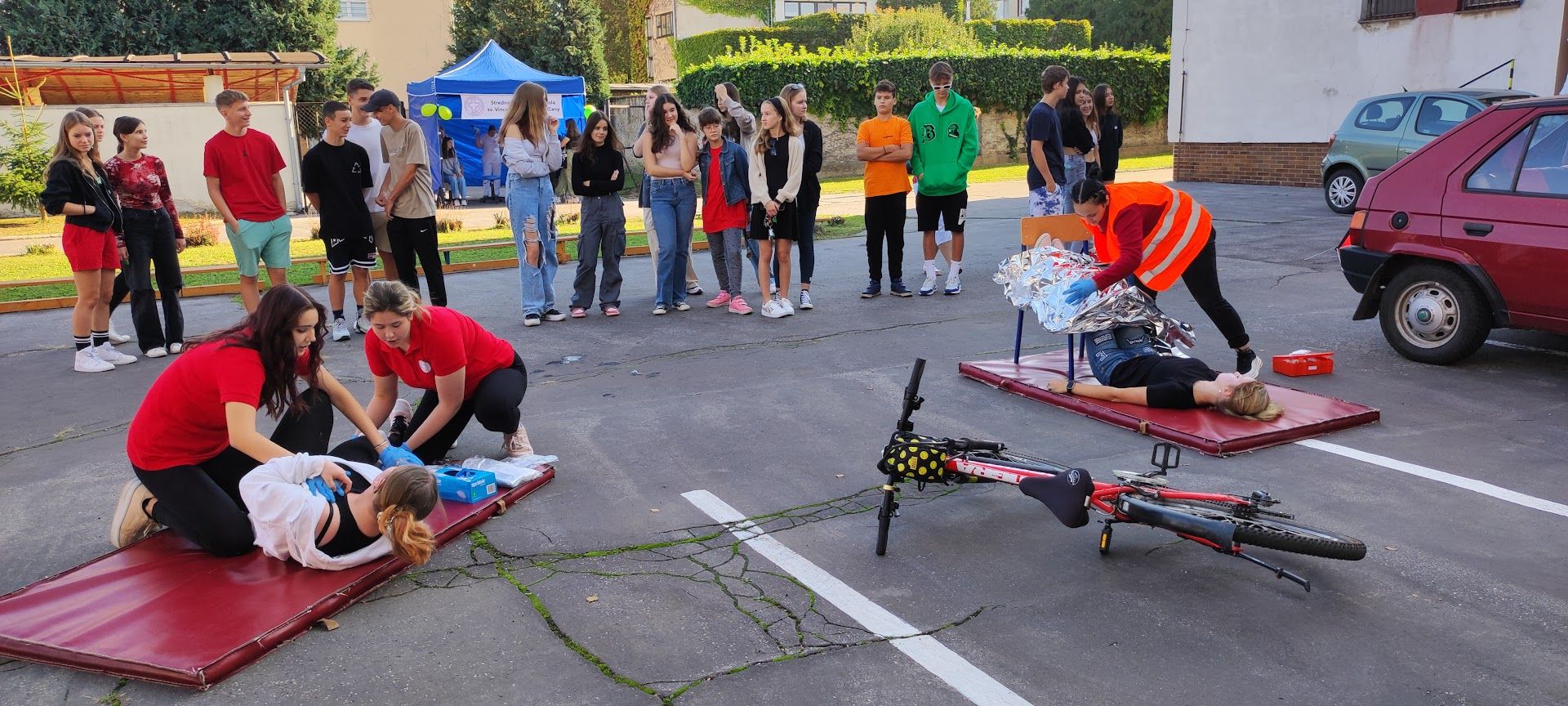 Stredná zdravotnícka škola sv. Vincenta de Paul v Topoľčanoch pripravila žiakom ZŠ modelové situácie dopravných nehôd a žiaci mohli vidieť ako treba ošetriť krvácanie či zlomeniny.