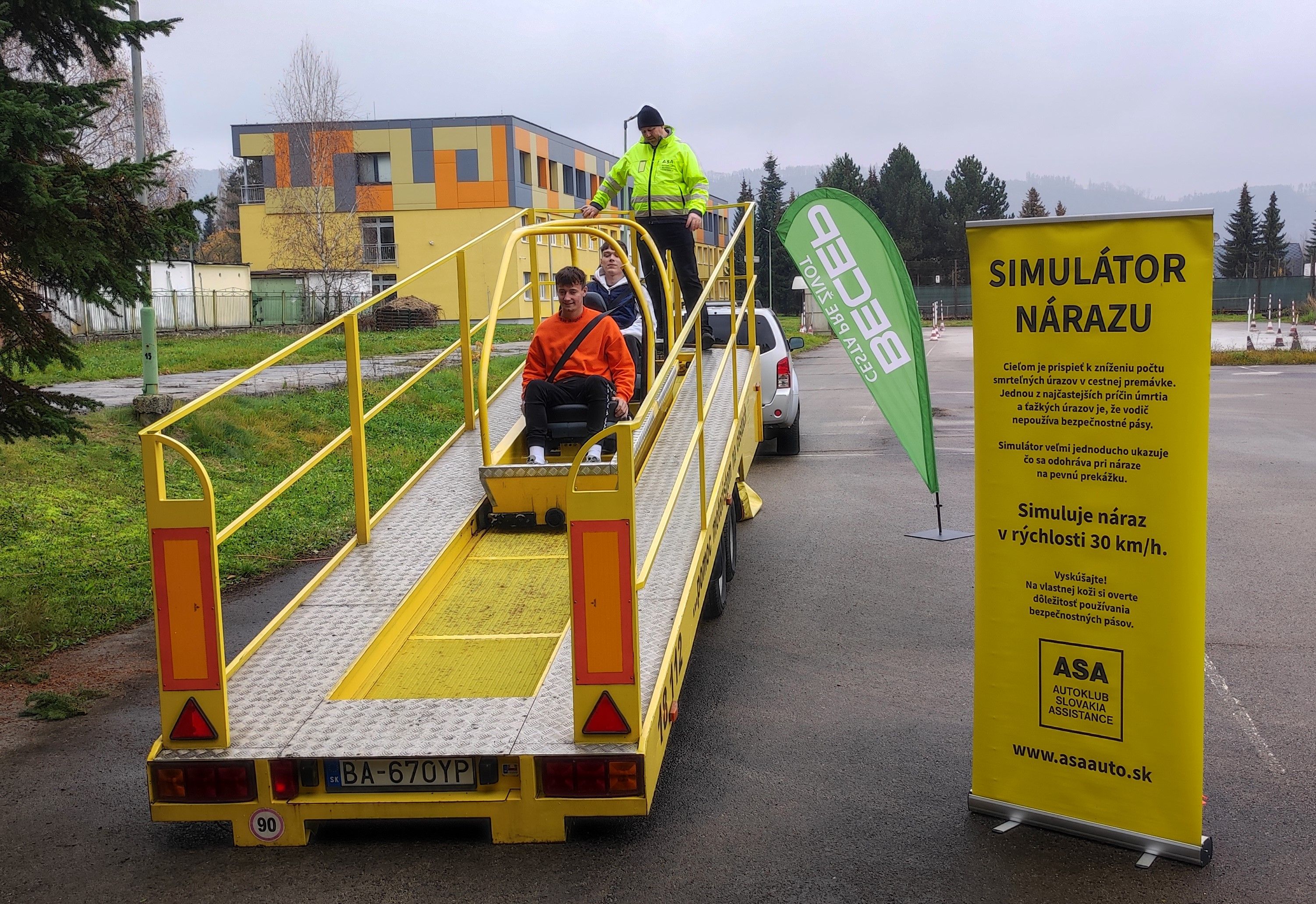 V rámci zážitkového vzdelávania si študenti mohli v exteriéri vyskúšať aké je to naraziť motorovým vozidlom do pevnej prekážky v rýchlosti 30 km/h. Zároveň si mohli vyskúšať okuliare simulujúce stav po požití alkoholu alebo omamnej látky.